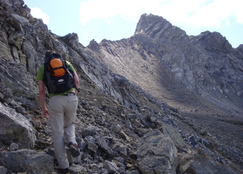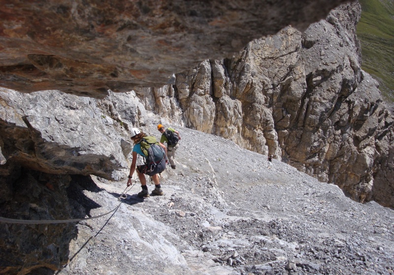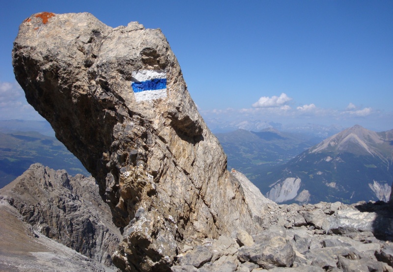 …sind wir heute der grossen Hitze entflohen. Unser Ziel war heute nicht nur der Gipfel des 3159m hohen Piz Mitgel, sondern auch die Saurierspuren, welche Andy Niedermann vor einigen Jahren an dessen Gipfelaufbau entdeckte, zu Gesicht zu bekommen. Nach dem Ausstieg des Klettersteigs hiess es dann: “Augen auf!”. Denn schliesslich kannten wir die genaue Position der 200 Mio Jahre alten Fährten nicht. Aber schliesslich bekamen wir die eindrücklichen Abdrücke ebenfalls zu sehen. Nach einer ausgiebigen, warmen Gipfelrast nahmen zufrieden wir den langen Abstieg über die “senda diagonala” in Angriff. und zu guter Letzt begossen wir die tolle Sommertour bei einem kühlenden Drink auf einer Savogniner Sonnenterrasse.