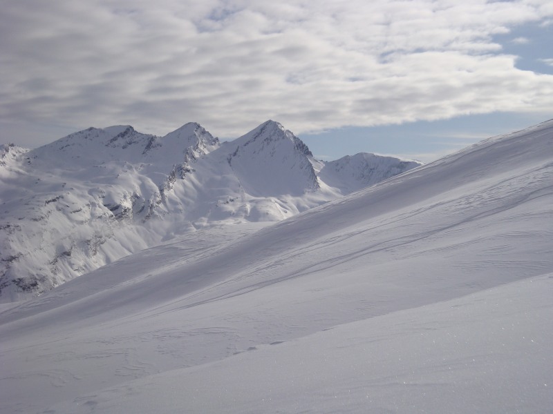 Die Wetterprognosen von SF Meteo sowie meteoschweiz verkündeten nichts Gutes für den heutigen Tag. Meteoblue (nomen est omen?) liess aber einen Hoffnungsschimmer im hintersten Avers erkennen. Also ab nach Juppa. Bei Minus 12.5 Grad schalteten wir dann gleich vom Start weg einen Gang höher, um auf Betriebstemperatur zu kommen. Eine gute halbe Stunde später kamen wir dann aber bereits an die wärmende Sonne. Dies nicht zuletzt weil der vorausgehende Spurtrupp sich “verwanderte” und wir kopflos hintendreinliefen. Naja, 80 Höhenmeter extra, was solls. Den ganzen Aufstieg genossen wir blauen Himmel und die umliegenden Hänge wurden teils mit Nebelbänken garniert. Bei der Abfahrt erwarteten uns dann unterschiedlichste Schneebedingungen. Flauschigen Pulver fanden wir vor Allem in den windgeschützten Mulden vor, während uns auf den Buckeln immer wieder fiese Windharschdeckel überraschten. Zu gute Letzt gings mit Doppelstocktechnik auf der Loipe zurück durchs Bergalgatal.