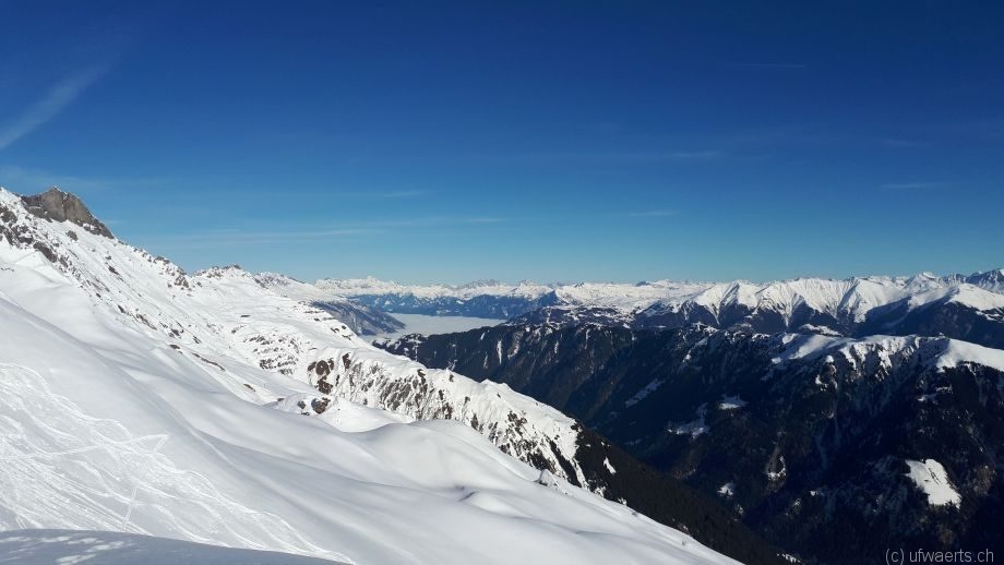 Beim letzten Hüttli, 150m vor dem Ziel liessen wir dann noch zwei der Gruppe im “Lazarett” zurück während Andi und ich bis ins Lückli aufstiegen. Die Aussicht war noch besser als gestern, heute war es auch gegen Süden hin klar und blau.