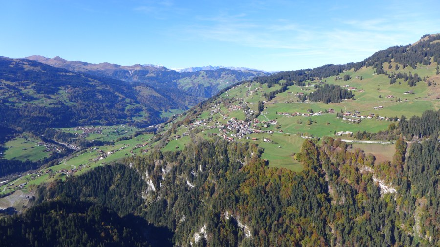 Dieses Experiment brannte Andres und mir schon länger unter den Nägeln: Ein Gleitflug mit dem Miniwing vom Eggberg nach Küblis. OK – Wir gingen “auf Nummer sicher” und hängten noch 90 Höhenmeter an zum Geisstschuggen. Ziel war es, das Äbihüttli zu überfliegen. Dann wäre Küblis im Trockenen. Uns war klar: Jeder Meter zählt! 1-2-3-Start. Ich ziehe alle meine Extremitäten aerodynamisch ein. Dies macht sich ein paar Flugminuten später eindrücklich bezahlt: Ich fliege mit 3 Metern Höhe am Äbihüttli vorbei und Andres schlägt 3 m unterhalb ein wie ein Komet. Ja nu… ein paar Minuten später war er wieder ready und folgte mir nach Küblis. Experiment geglückt – wir sind pronto für weitere Schenkelklopfer :-)))